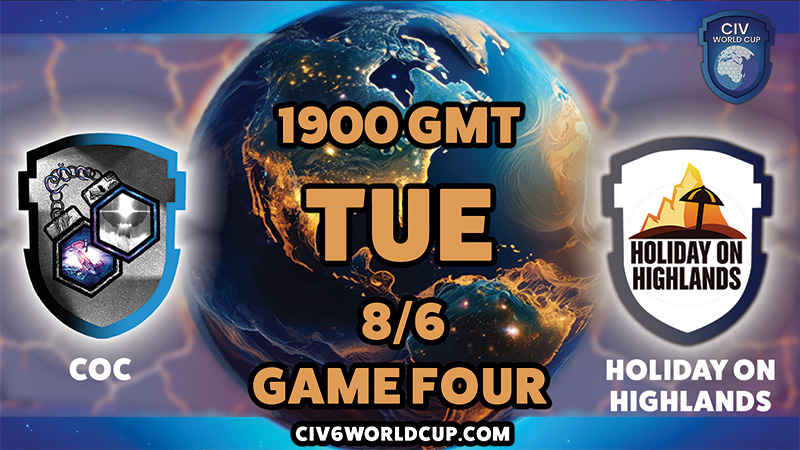 Change of Circumstance vs Holiday on Highlands | FINALS – Game 4 | CWC Season 9 Spread the word! CöC vs Holidays on HighlandsPreviewENGLISH COMMENTARY FRENCH COMMENTARY FRENCH COMMENTARY Details League Season Full Time Civilization World Cup 2024-1 0' CöC JskaCynthTaskForceFishKhornieFernoRageBenAlexis KremppTrynda Holidays on Highlands DaveMr ToesAndrewSabugaMariusbwNyreenSpaceManujiRegnier