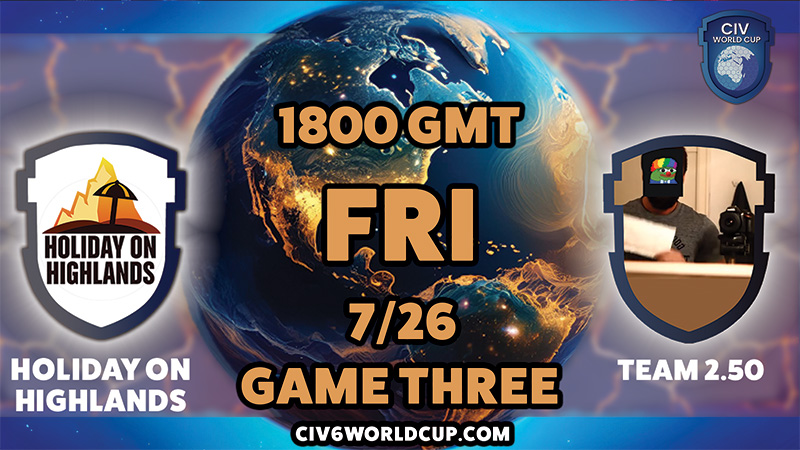 Holiday on Highlands vs Team 2.50 | Playoffs – Game 3 | CWC Season 9 Spread the word! Holidays on Highlands vs Team 2.50PreviewFRENCH COMMENTARY RUSSIAN COMMENTARY ENGLISH COMMENTARY ENGLISH COMMENTARY FRENCH COMMENTARY Details League Season Full Time Civilization World Cup 2024-1 0' Holidays on Highlands DaveMr ToesAndrewSabugaMariusbwNyreenSpaceManujiRegnier Team 2.50 Derios227JonApeulFkdnKiberLegendennicohabibiStrokeZMikado