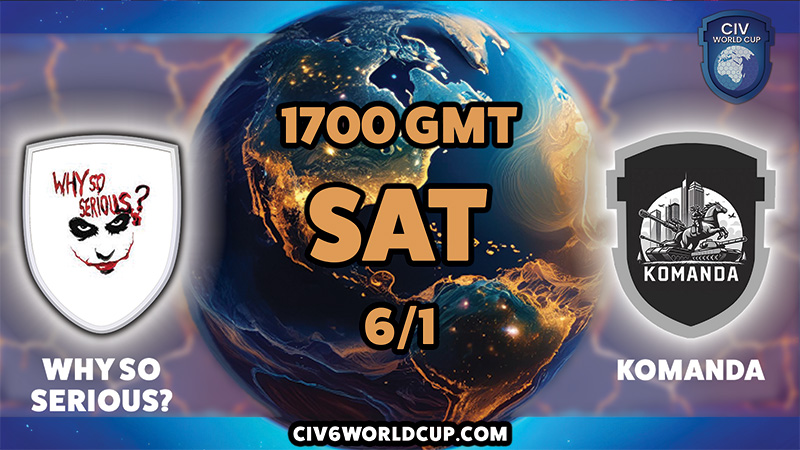 Why So Serious? vs Komanda | Group Stage | CWC Season 9 Spread the word! Why So Serious? vs KomandaPreviewENGLISH COMMENTARY RUSSIAN COMMENTARY Details League Season Full Time Civilization World Cup 2024-1 0' Why So Serious? lflores826AdamTheEngineerdCode.Timesahchickenudied4sciencemukdamkaldalG dotVAL3R Komanda David LichDemonarJust_D1maKabachOkMilentovichSoloswatiqqxer0Valanchik