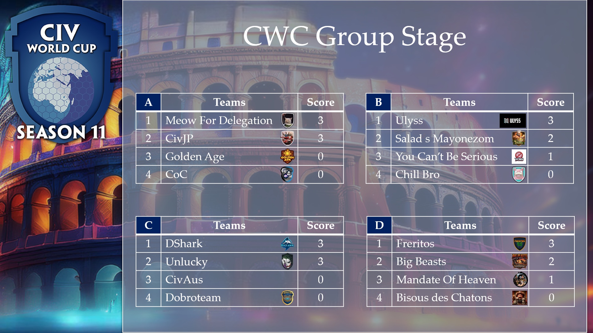 • CWC Season 11 Teams